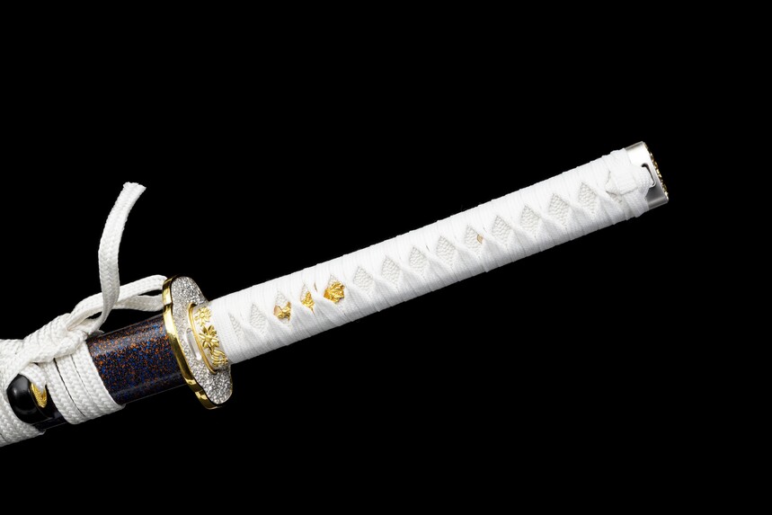 Embrace the chill of the cosmos with ‘The Frozen Star,’ a blade that marries celestial beauty with high-performance resilience. Designed for the martial artist who values both aesthetics and durability, this katana features a mesmerizing ‘Starry Blue’ saya that evokes the depth of a galaxy, speckled with stardust. The pristine white handle wrap contrasts sharply against the deep blue, giving the sword a pure, wintry elegance that commands attention in any dojo or collection.