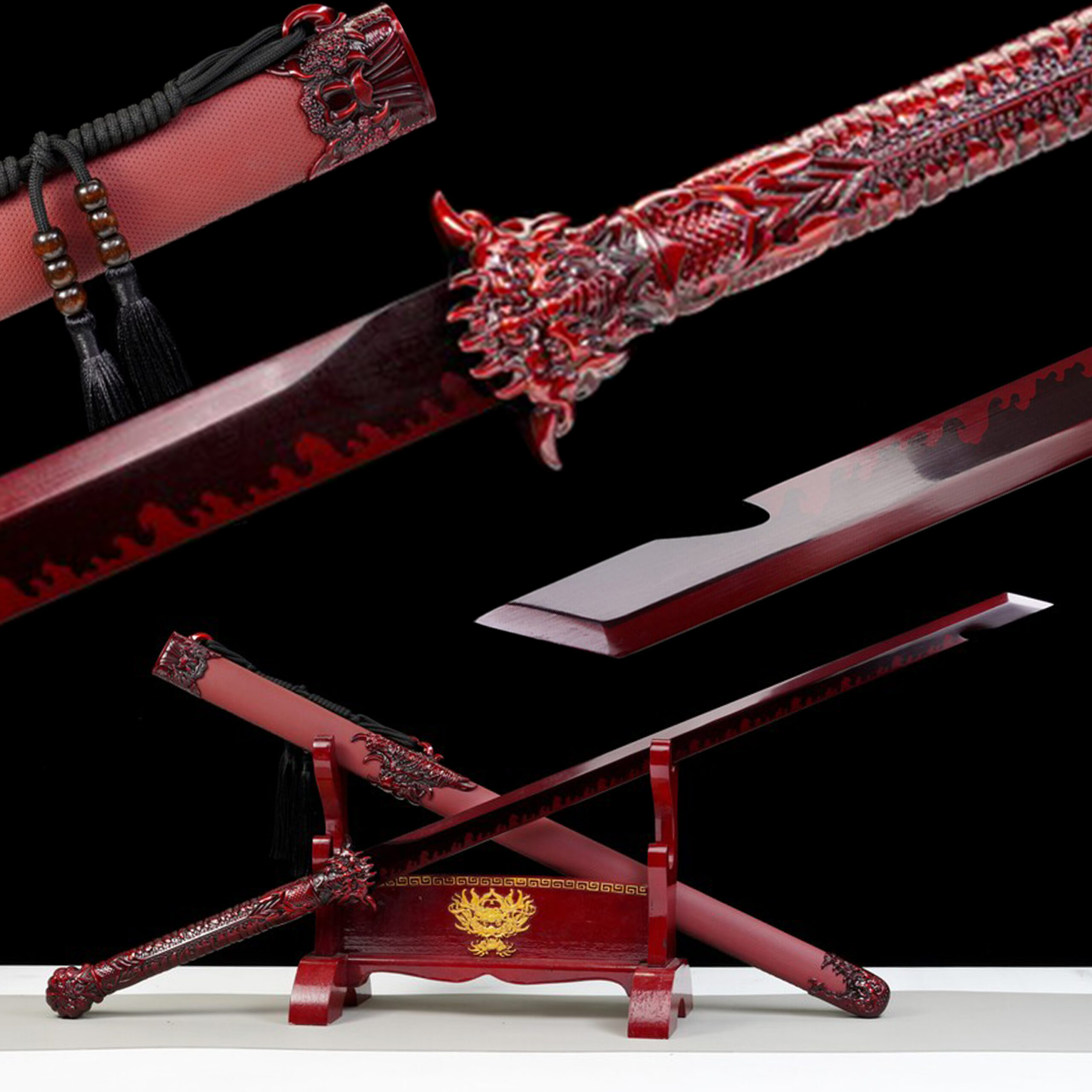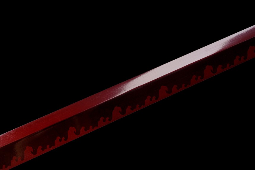 • Premium Leather Saya: Solid wood scabbard wrapped in crimson leather with 3D fittings.